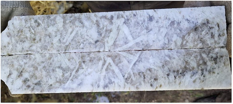 Image 1: Spodumene pegmatite in drill core DDH 23-1597-01