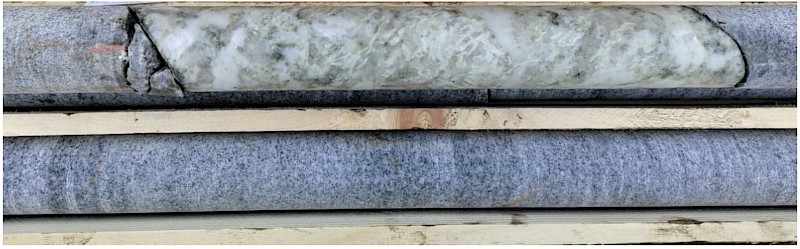 Image 2: Spodumene pegmatite in drill core DDH 23-1597-02