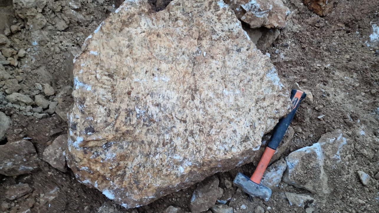 One of the spodumene pegmatite boulders unearthed from the shallow trench at Knockeen.