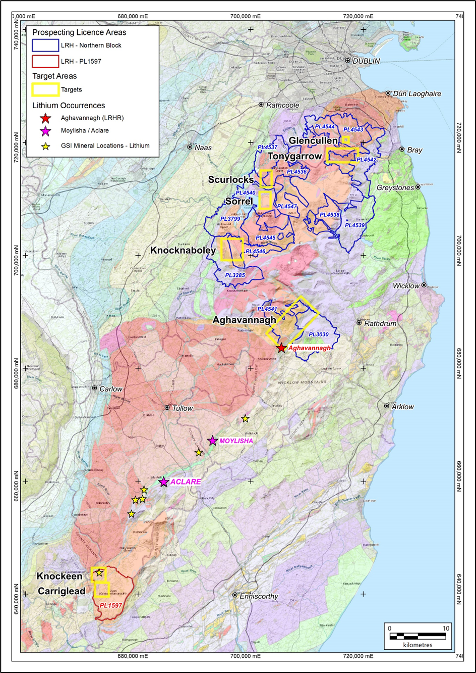 As part of an ongoing workflow, the Company continues to identify, fully assess and apply for new prospective areas for spodumene-pegmatite exploration opportunities along the district-scale Irish lithium pegmatite belt.