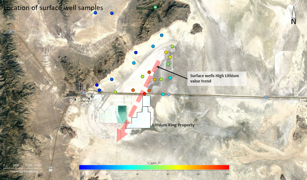 The Property sits along the Southern extension of an interpreted high Lithium value trend from the surface well samples*.